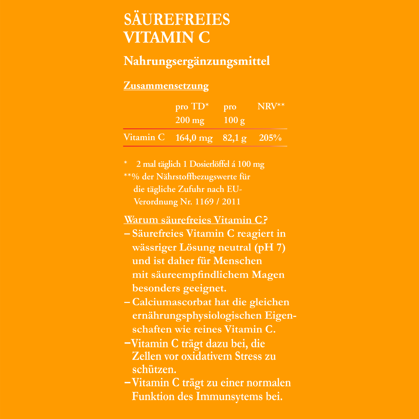 Säurefreies Vitamin C Petrasch ist ein ganz besonderes Vitamin C Präparat. Es besteht aus Calciumascorbat und reagiert in wässriger Lösung absolut neutral. Damit ist es speziell für Menschen mit besonders säureempfindlichem Magen geeignet.